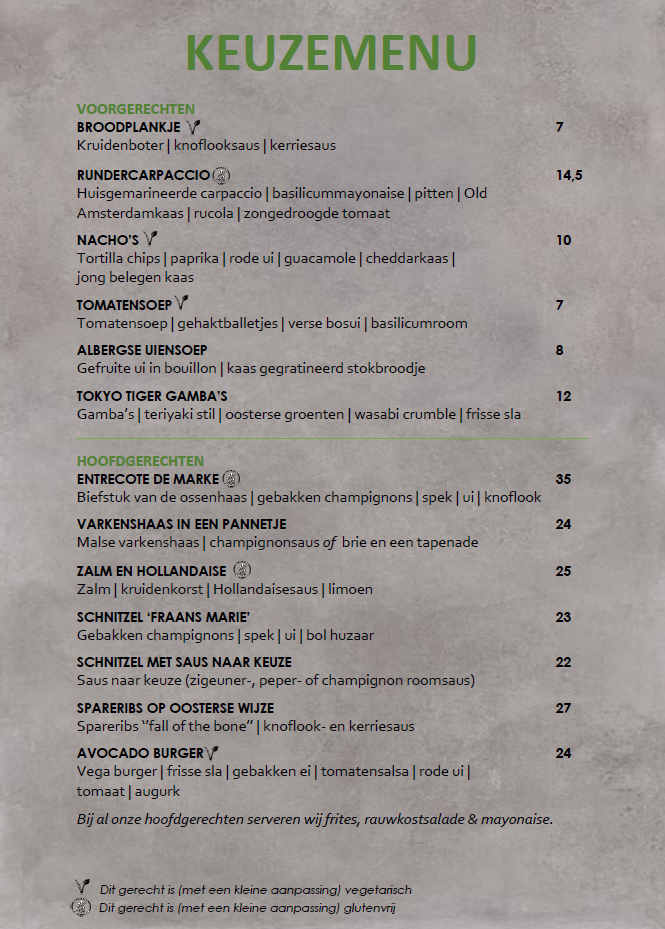 KEUZEMENU (voor groepen vanaf 12 personen)